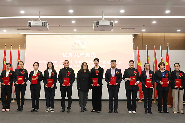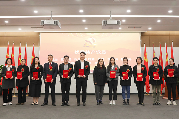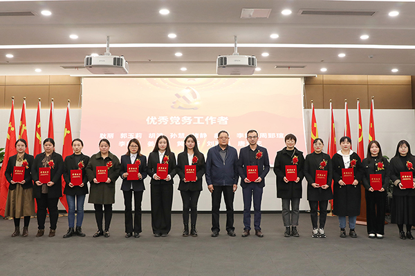校领导为优秀共产党员、优秀党务工作者、先进党支部、先进党总支/直属党支部以及省级“双带头人”教师党支部书记工作室颁奖。