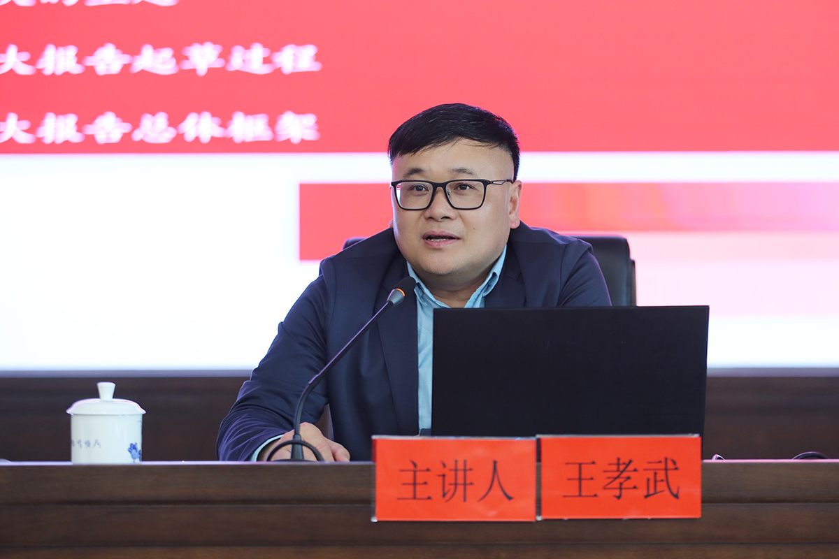 宣讲会共分为党的二十大精神解读和奋进高等教育高质量发展新征程两个部分。在第一部分中,王孝武从党的二十大起草过程及总体框架、过去5年的工作和新时代10年的伟大变革、马克思主义中国化时代化、中国式现代化等四个方面给大家做了详细阐述,并讲解“三个务必”“六个必须坚持”“两步走战略安排”“全面建设社会主义现代化国家的应有之义及内在要求”等重要内容,为全体师生进一步学懂弄通党的二十大精神做了指引。