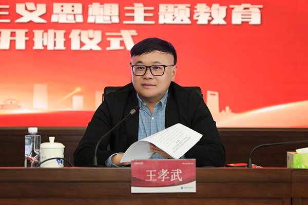 会议第一阶段,王孝武宣读《安徽新华学院学习贯彻习近平新时代中国特色社会主义思想主题教育读书班实施方案》(以下简称《方案》)。接着邸建伟作动员讲话。会议由王丽主持。