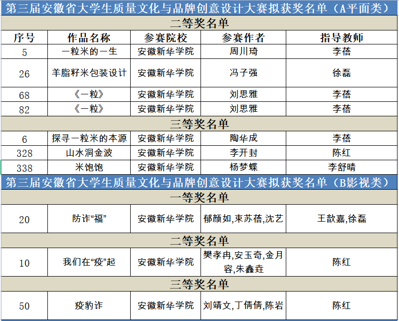 喜报!我校学子在第三届安徽省大学生质量文化与品牌创意设计大赛中喜获佳绩