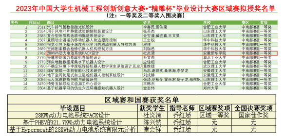 本网讯(通讯员:乔红娇)5月28日,中国大学生机械工程创新创意大赛•中国机械行业卓越工程师教育联盟第六届“精雕杯”毕业设计大赛决赛,在重庆大学成功举办。我校智能制造学院乔红娇老师指导的2019级机械设计制造及其自动化2班的杜炎清同学的毕业设计—《28KWh动力电池系统PACK设计》在全国100余所高校的1036作品中脱颖而出,荣获中南部赛区一等奖,并入围“精雕杯”毕业设计大赛全国总决赛,最终获得“国家级佳作奖”,充分展示了安徽新华学院机械学子的风采!