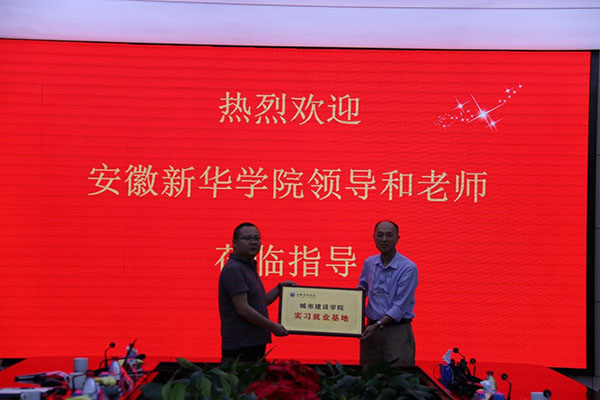随后,李金星代表安徽新华学院聘请吴德雨为安徽新华学院城市建设学院产学研副院长,并颁发了聘书。城市建设学院院长沈小璞与苏亚集团王金国共同为实习就业基地揭牌。