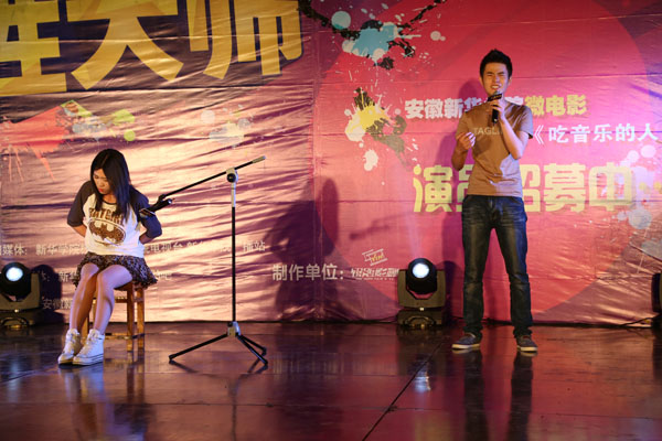 新华学院报讯(学生记者 刘文娟 王友雅)安徽省首部高校微电影《吃音乐的人》正在紧锣密鼓地招募演员,经过海选后一个星期的紧张筹备,5月24日晚,微电影演员招募总决赛在如琴湖畔举行。
