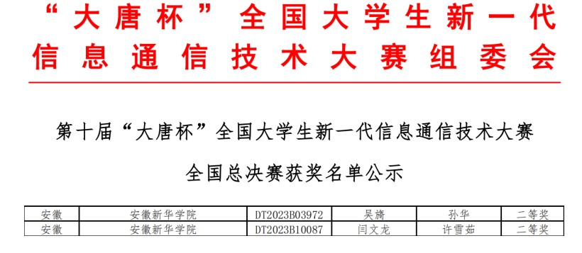 我校电子工程学院/智能制造学院学子在第十届“大唐杯”全国大学生新一代信息通信技术大赛中荣获佳绩