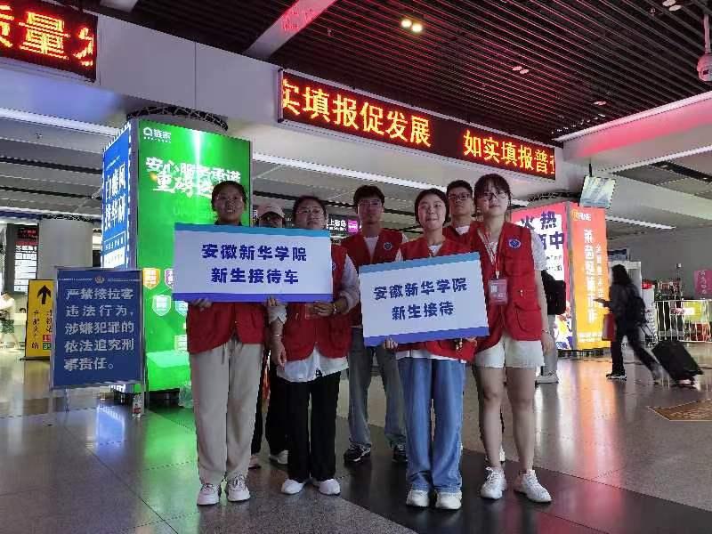 “同学,你好,乘坐安徽新华学院迎新车辆请往这边走……”为让新生报到不迷路,学校在火车站、高铁站、汽车站等主要交通枢纽设置了迎新接待点,安排多辆一站式直达“新生接待车”,护送新生安全入校。
