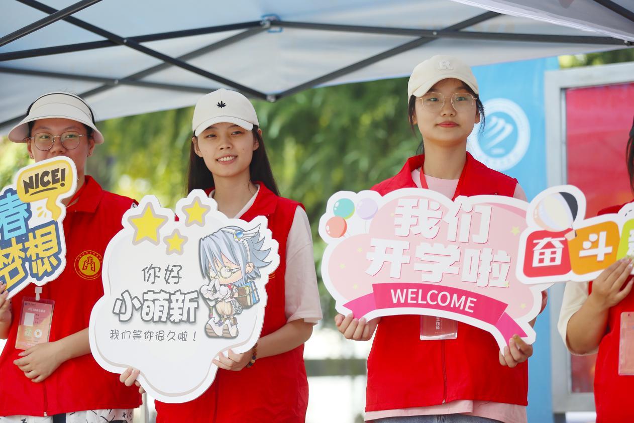 蜀山南麓,微风旖旎,2023级新生带着满满的期待与憧憬,步入新华园的大门。“你好新同学”立体字,特色鲜明的主题喷绘、焕然一新的彩旗、条幅,精心设计的新生打卡点,还有一件件流动的“红马甲”……正谱写着“新华园欢迎你”的秋日赞歌。