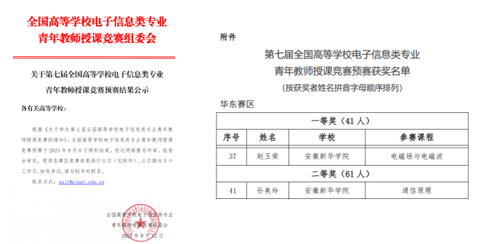 喜报!我校教师在全国高等学校电子信息类专业青年教师授课竞赛预赛中荣创佳绩