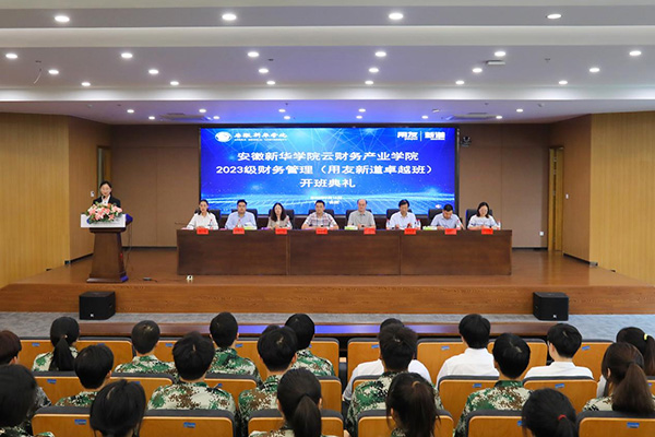 本网讯(通讯员:陈照冉)9月15日下午,安徽新华学院云财务产业学院2023级财务管理(用友新道卓越班)开班典礼在科研办公楼二楼多功能厅举行。出席开班典礼的领导有安徽新华学院校长助理王琦进,新道科技股份有限公司研究院院长宋健、助理总裁刘莉、安徽省区总经理侯腾飞、销售总监康阿朋,财会与金融学院院长李光龙、副院长张璐、副院长彭智。财会与金融学院部分教师代表、2023级财务管理(用友新道卓越班)全体学生及2019级、2020级、2021级财务管理(用友新道卓越班)部分学生代表参加了开班典礼。