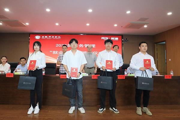 安徽新华学院校长助理王琦进和新道科技股份有限公司助理总裁刘莉在典礼上分别致辞。王琦进代表学校对莅临参加活动的各位领导表示热烈的欢迎,对加入财务管理(用友新道卓越班)2023级全体新生表示热忱欢迎。致辞中他指出,成立云财务产业学院,建设财务管理(用友新道卓越班)是对标国家和安徽发展战略与经济社会发展需求,是基于“大智移云物”的新一代信息技术的重要教育抉择。经过4年实践,用友新道卓越班深入推动了校企深度融合,在专业建设、项目成果、学生能力培养和社会影响等维度取得丰硕成果。他希望财会与金融学院能够充分发挥校企优势,助力新道班成长;新道科技也能够一如既往支持新道班发展。最后他对新生提出了求知探索、服务奉献和创新实践的期望。