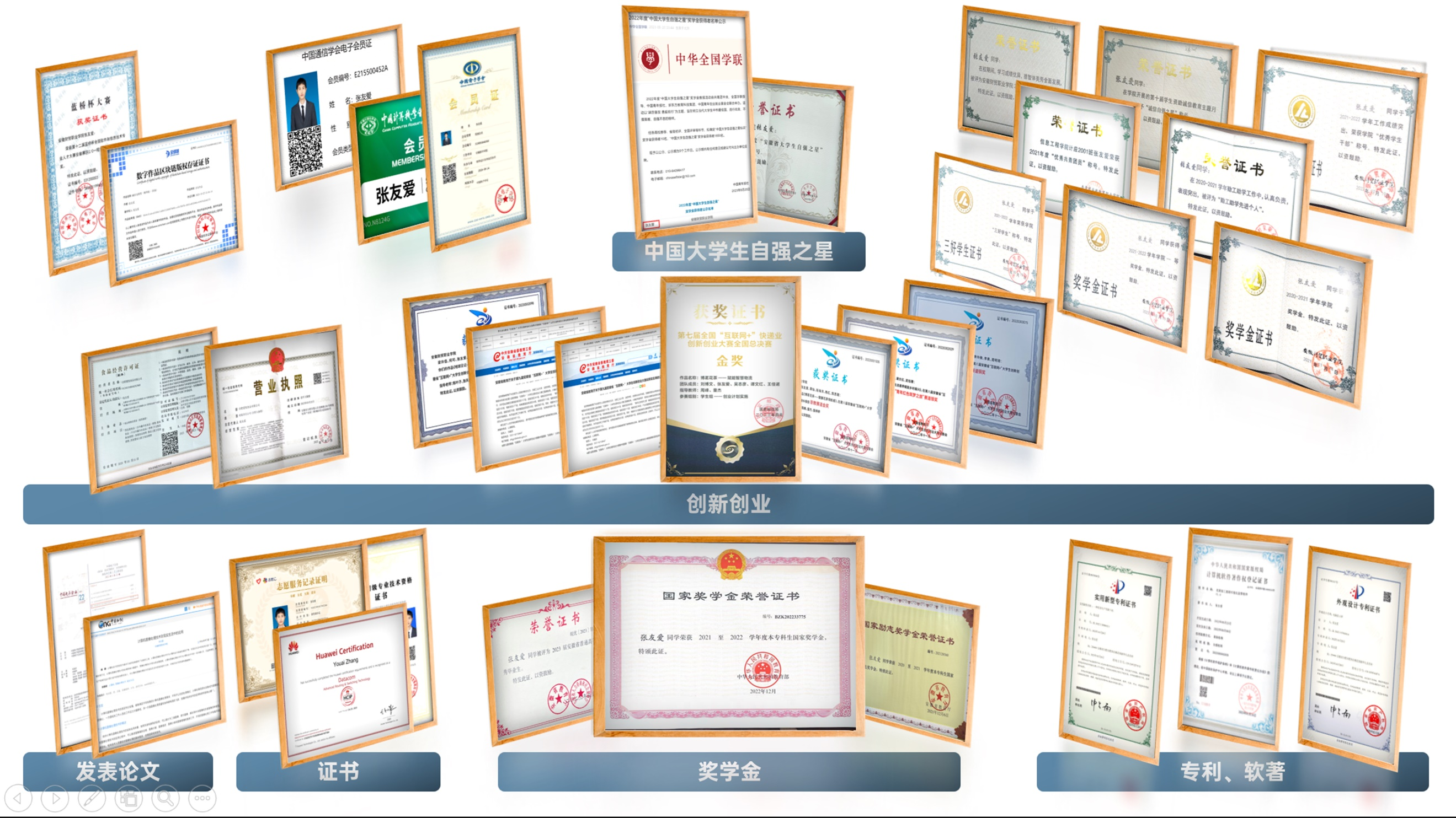 张友爱同学系2023级计算机科学与技术专业学生,他勤奋学习、刻苦钻研,曾获中国大学生自强之星、国家奖学金等国家级、省级荣誉35项;并取得华为HCIP高级工程师证书、助理工程师证书,是中国计算机学会会员、中国电子学会会员、中国通信学会会员等。