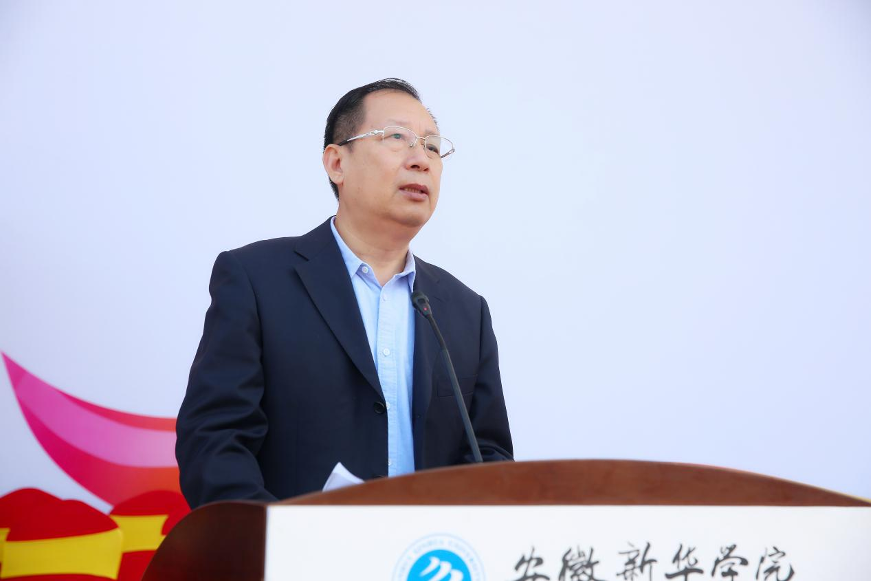 省督导专员、安徽新华学院党委书记邸建伟宣布我校第十四届田径运动会隆重开幕。
