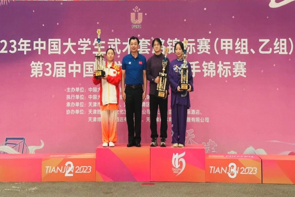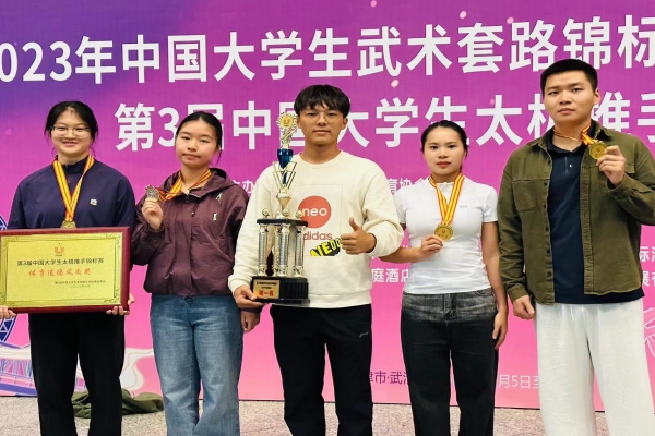 我校学子在教练员汪洋、崔杜峰的带领下,奋勇拼搏,敢打敢拼,发挥出色,体现出胜不骄,败不馁,输赢有德的精神风貌。中场休息时间,教练员们带领运动员及时分析赛况,不断调整技战术,为运动员取得胜利进行保驾护航。最终,2021级大数据专业学生胡宇航夺得甲组女子推手实战52公斤级第一名和非遗项目女子李氏太极拳第一名,2020级大数据专业学生李楠夺得甲组女子推手实战62公斤级第一名,2021级幼教专业学生王展鹏夺得非遗项目男子李氏太极拳第一名。此外,我校还被授予“体育道德风尚奖”。
