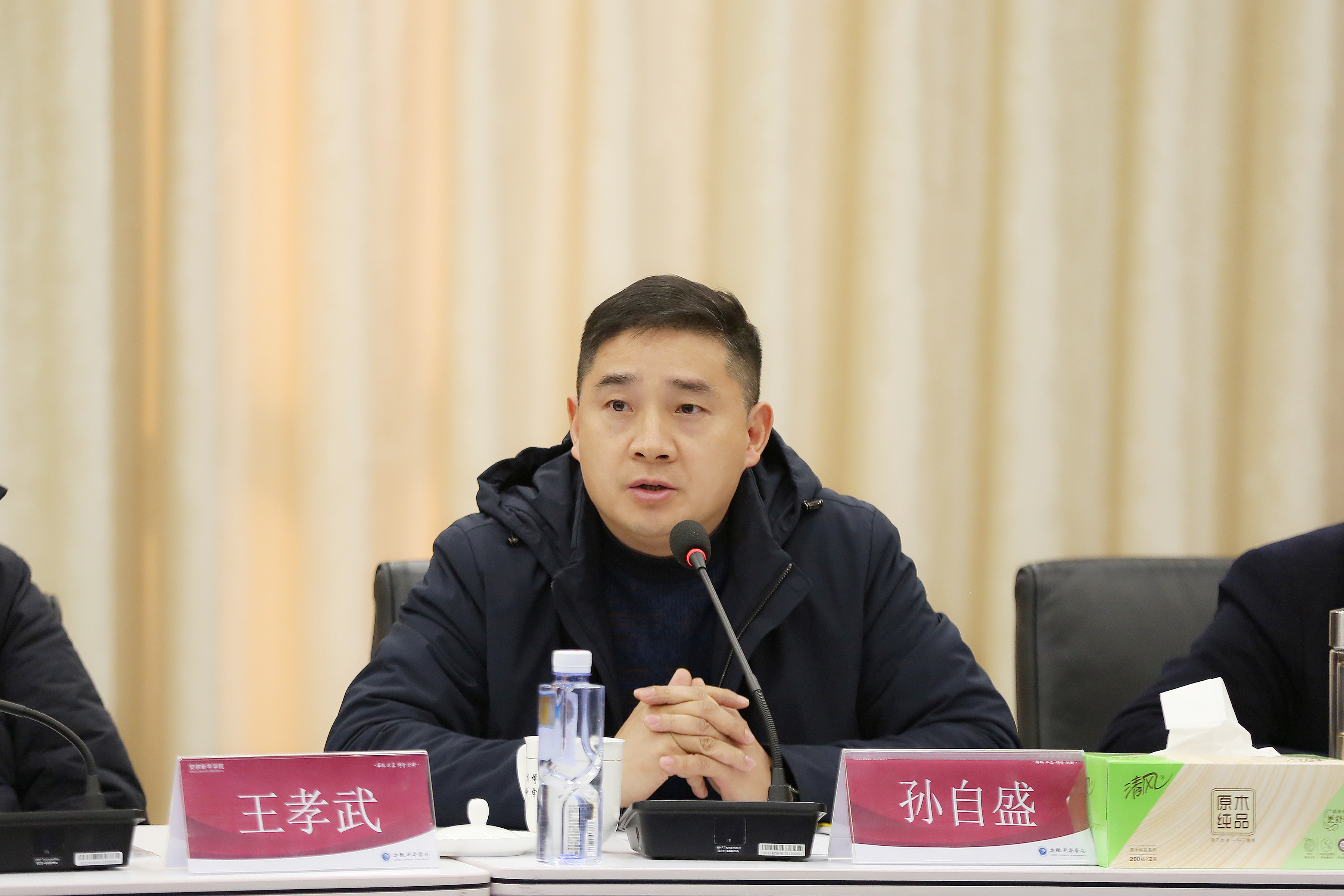 本网讯(通讯员:王蓓蓓 摄影:翟漱文)为营造良好的学术科研氛围,搭建高质量的学术交流平台,1月7日下午,发展规划处(高教研究所)在科研办公楼一楼多媒体室与安徽大学高教研究所联合举办高等教育研究学术沙龙。安徽新华集团副总裁、安徽新华学院党委副书记王孝武出席会议并致辞。出席本次活动的有安徽大学高等教育研究所直属党支部书记孙自盛、副研究员朱光明、副研究员夏焰、副教授刘彦军、安徽新华学院学校办公室/发展规划处(高教研究所)主任/处长杨磊、文化与传媒学院副院长洪玉、素质教育研究中心教授朱镜人。参加会议的还有安徽大学高等教育研究所16位研究生以及安徽新华学院发展规划处(高教研究所)、学校办公室的9位老师。活动由杨磊主持。