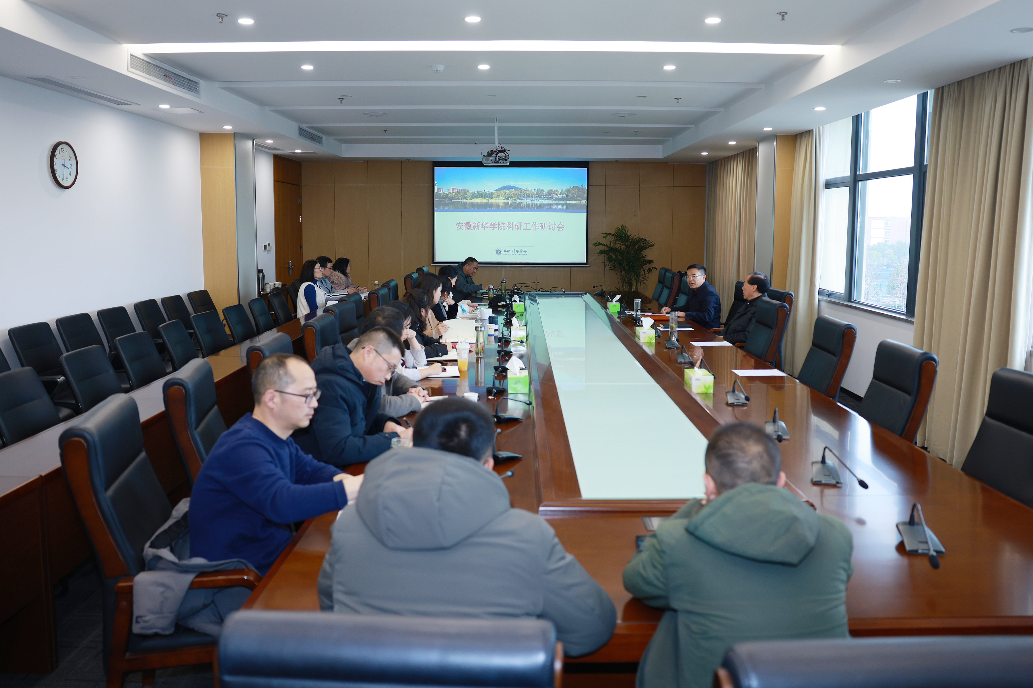 本网讯(通讯员:潘玲阳 摄影:翟漱文)为扎实推进我校申硕工作,进一步激发我校科研创新活力,1月16日下午,科技处在科研办公楼608召开科研工作研讨会。学校董事长储国定,副校长戴昕,各二级学院执行院长参加会议。会议由戴昕主持。