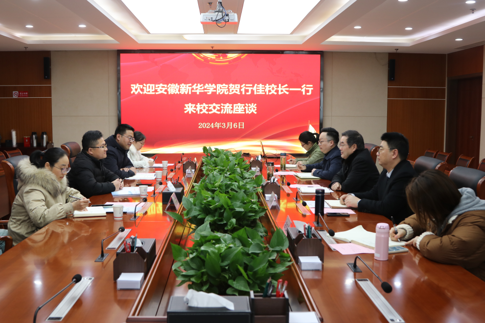 本网讯(通讯员:孙马莉、张雅婷)为进一步加强我校高等学历继续教育规范发展,为广大学生提供更优质的学习支持服务。3月6日下午,副校长贺行佳带队一行四人赴安徽开放大学考察交流。安徽开放大学党委委员、副校长诸咸斌、安徽继续教育网络园区管理中心、安徽省终身教育学分银行管理中心负责人钱丰收等领导热情接待了考察组一行并进行了座谈交流。