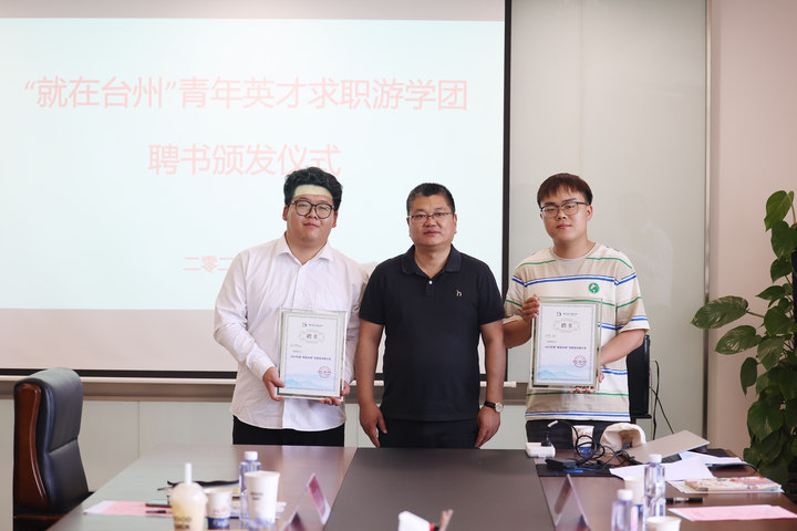 随后,温岭市发布了“就在台州”全国青年英才求职游学短视频大赛的招募令并为我校毕业生代表颁发青年英才求职游学团聘书。