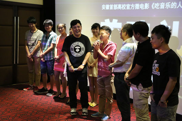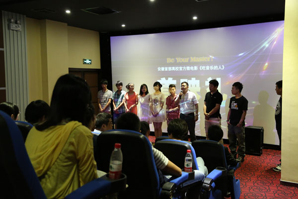 本网讯(记者 张志彦,摄影 朱微波)6月21日,安徽新华学院的官方微电影“个性大师”之《吃音乐的人》举行首映礼,这部以青春励志为主旋律、传递正能量的影片是安徽省高校首部官方微电影。目前这部微电影关注度很高,截止6月24日,优酷网的点击量超过了6万次,已经被推荐至原创版块的首页。