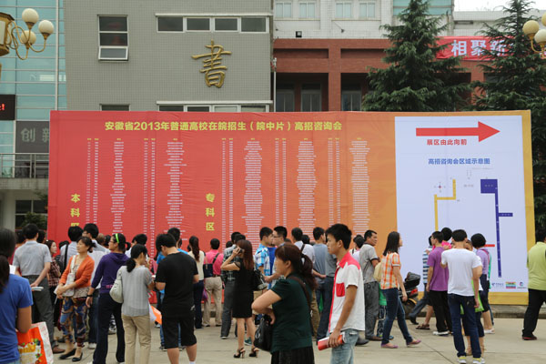 本网讯(记者 张志彦)6月26日,由省教育招生考试院主办的安徽省2013年在皖招生普通高校皖中片现场咨询会在我校举行。来自全国21个省市的307所高校的工作人员现场为考生和家长提供咨询服务,解答报考疑惑。