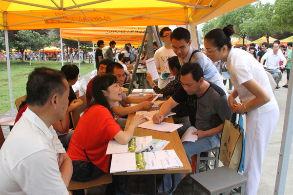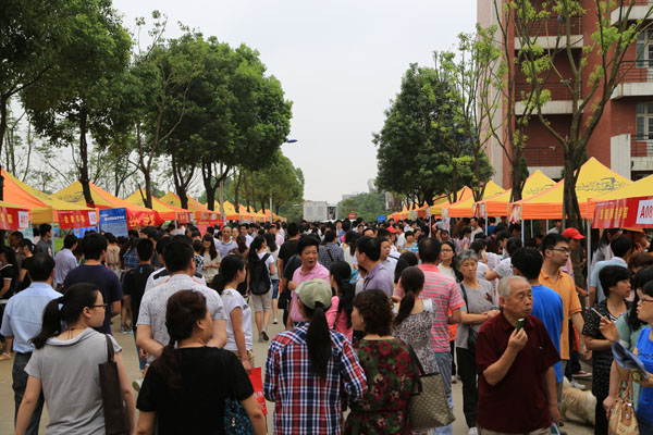 校园内彩色的帐篷沿着校园环形路整齐排放着,各高校的招生展台装饰得很精致,纷纷把各校的亮点和优势展现出来吸引考生和家长。30000多名从全省各地市纷至沓来的考生和家长聚集在一张张展台前,仔细询问自己关心的问题。各高校的招生代表面对考生和家长的争相提问,都在耐心介绍本校的情况以及今年的招生政策,站在后面听的考生认真记录下报考院校的相关信息。