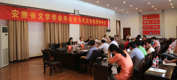 会议由学会副会长兼秘书长岳毅平主持,会长唐先田,副会长谢昭新、裴章传、方维保、詹向红、周根苗、孟方、方锡球,胡功胜副秘书长以及来自省社科院、省文联、安徽大学、安徽师范大学、安庆师范学院、阜阳师范学院、合肥学院、宿州学院等单位的40多名会员代表、专家学者参加了会议。省作协常务副主席许辉应邀出席会议。