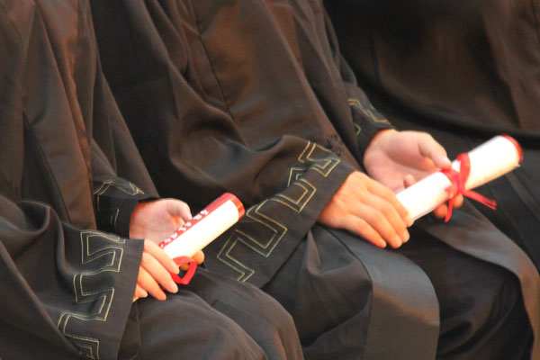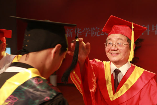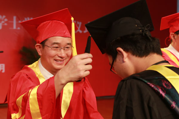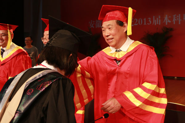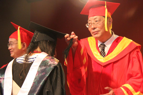 集团公司副总裁、学校执行董事、党委副书记王孝武,党委书记、督导专员胡昭林,院长、校学术委员会主任石秀和,副院长杨世国、马凤余、袁种宝、倪征等与学生代表一一握手,为他们颁发学士学位证书、扶正流苏,祝贺他们顺利完成大学四年的学业。