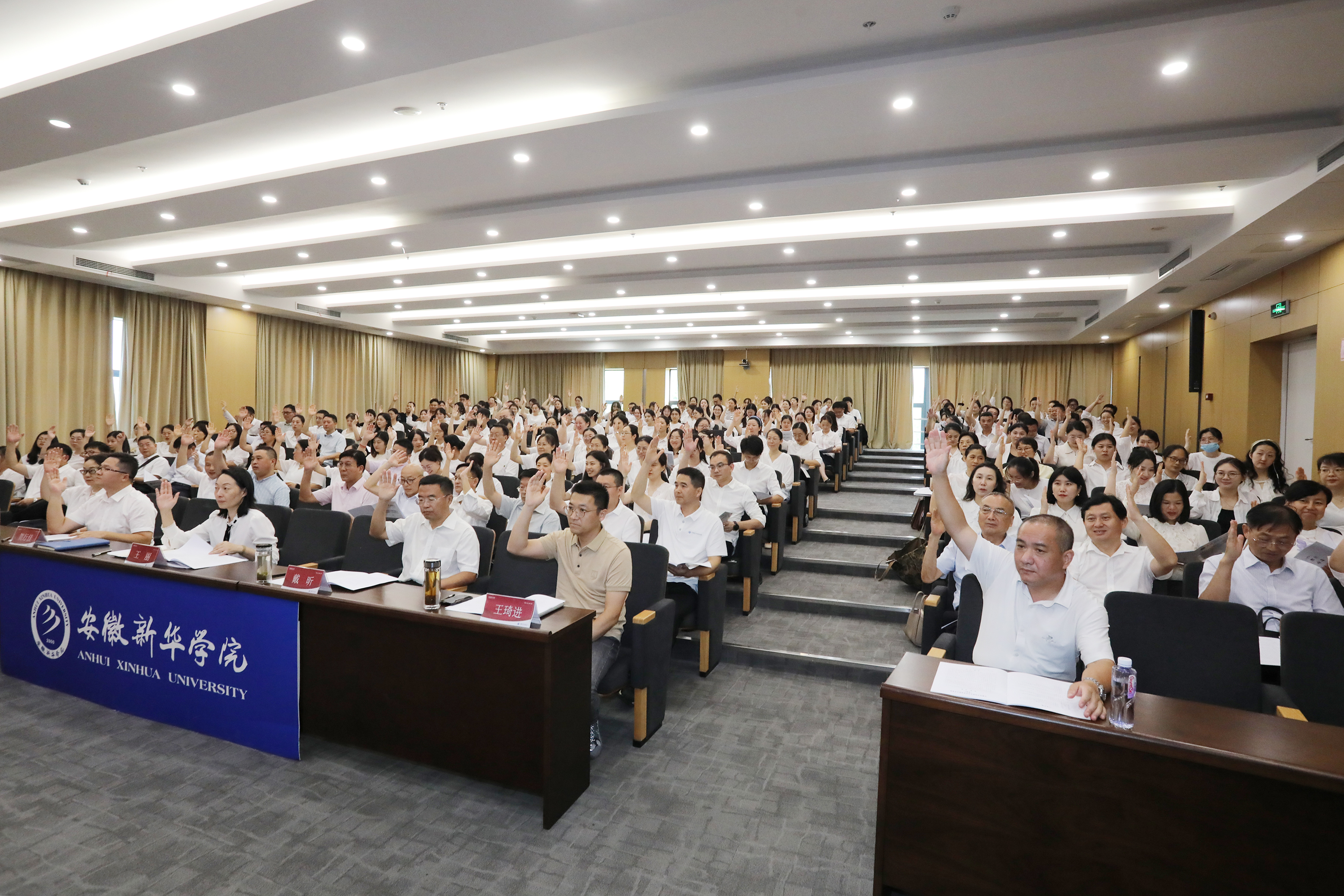 本网讯(通讯员:潘玲阳 摄影:翟漱文 沈智伟)8月28日下午,安徽新华学院社会科学界联合会(以下简称社科联)成立大会暨第一次会员代表大会在科研楼多功能厅举行。安徽省社科联党组成员、副主席刘涛,安徽省社科联秘书长、一级调研员韩修良,安徽农业大学社科联副主席、外国语学院党委书记方章东,我校董事长储国定,省督导专员、校党委书记邸建伟,校长赵良庆,常务副校长王丽,副校长戴昕、贺行佳、王琦进,校长助理盛晓青出席会议。安徽新华学院社科联第一届委员候选人、各二级单位会员代表共200余人参加了成立大会。