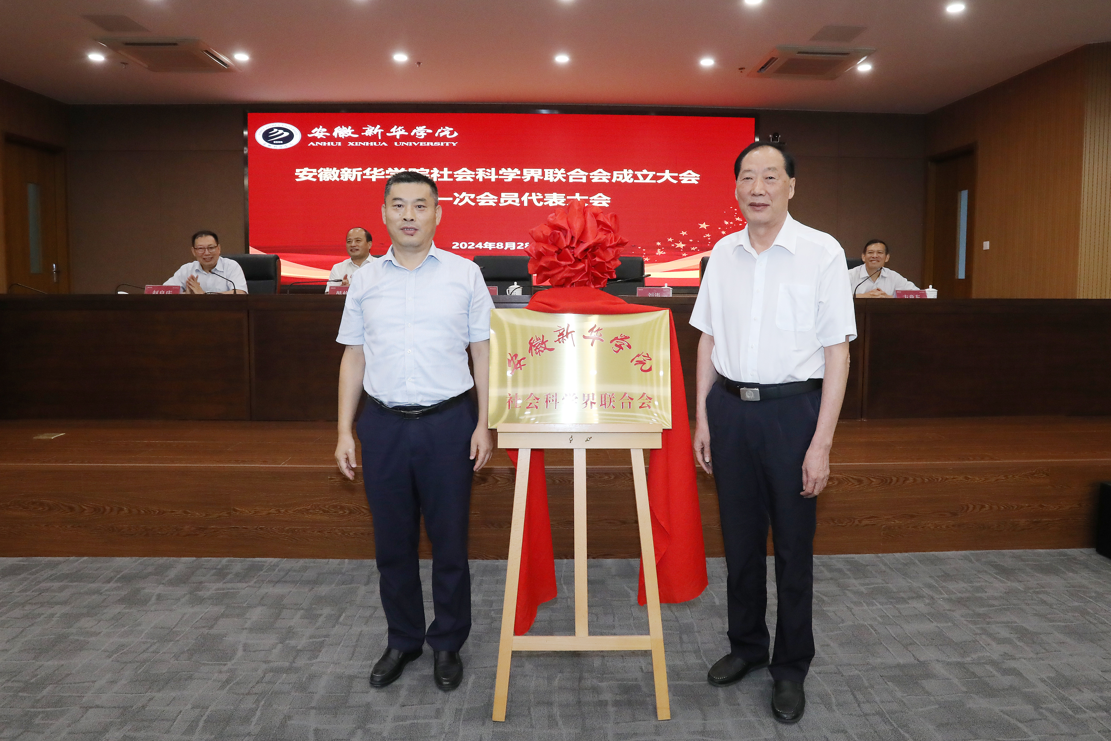 最后,刘涛和储国定共同为“安徽新华学院社会科学界联合会”揭牌。