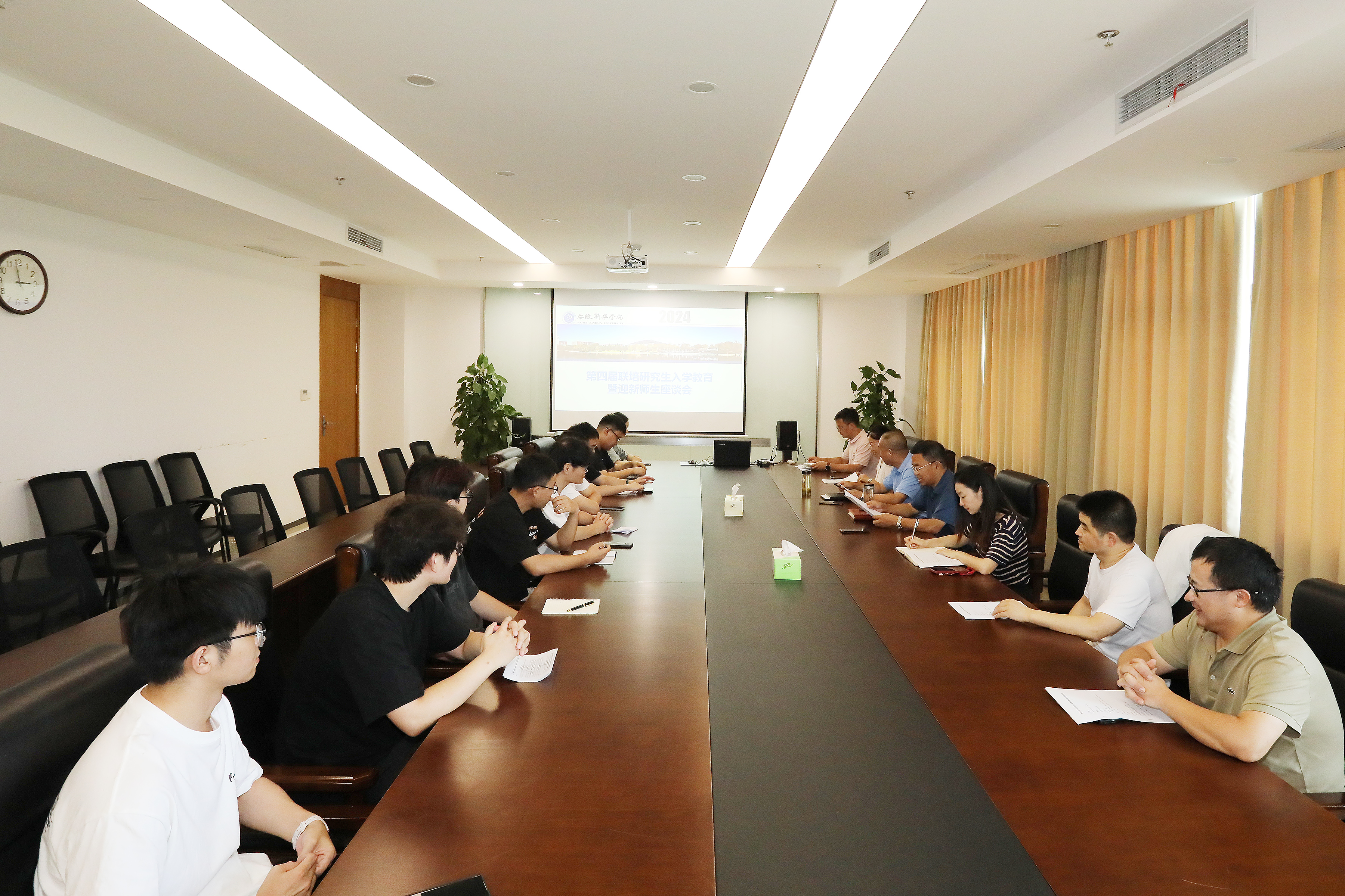 会议第一阶段,邱国新介绍与会领导及研究生导师,各位研究生也逐一做了自我介绍。随后,会上介绍了我校研究生管理方式并宣读了《安徽新华学院联合培养硕士研究生管理办法》。