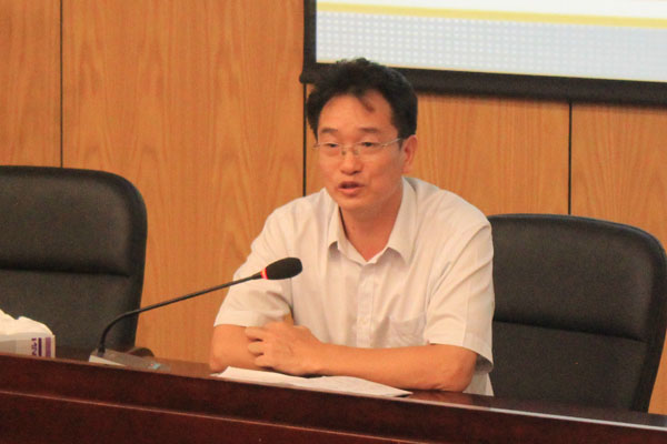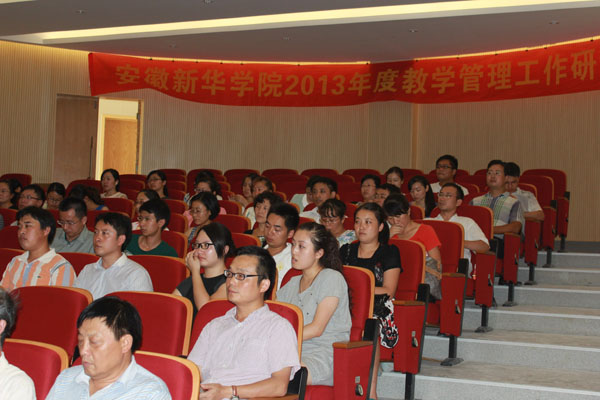 本网讯(王文韬)为加强我校教学管理工作研讨,促进教学管理创新,进一步提高教学管理人员业务能力,提升教育教学质量,8月7日下午,我校教师教学能力发展中心组织召开2013年度教学管理工作研讨会,副院长马凤余教授出席并讲话。会议邀请了铜陵学院教务处处长高天星教授担任主讲。