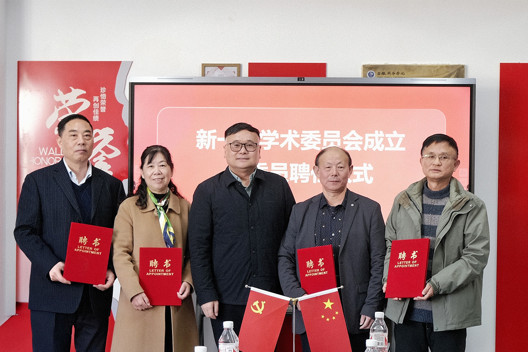 会议第三阶段为“学术委员会”新任委员聘任仪式,王孝武为谢家顺、李世军、张大鹏、刘学慧四位教授颁发聘书,四位教授均对学院给予的信任表示感谢,并为学院专业建设、科学研究等建言献策。