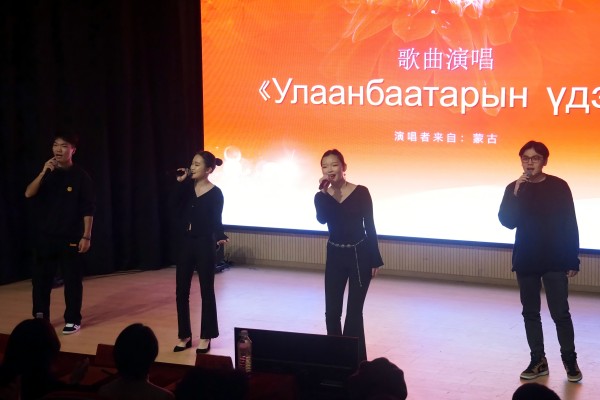 蒙古学生的歌曲演唱深情悠扬,独特的嗓音和民族风格的旋律,仿佛将大家带到了广袤的蒙古草原,让听众沉浸在浓郁的异域文化之中,感受着蒙古国的独特魅力。
