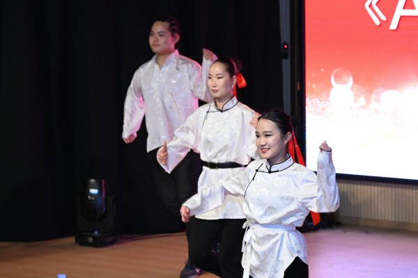 蒙古学生的舞蹈表演将活动推向又一个高潮,他们豪迈奔放的舞姿、矫健的步伐,展现出蒙古民族的飒爽英姿,台下观众纷纷被这充满力量感的舞蹈所吸引,现场气氛热烈非凡。
