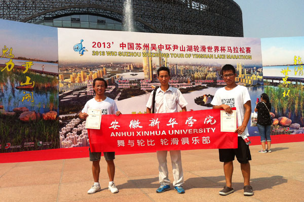 本网讯(张爱臣)8月8日至10日,2013年中国速度轮滑公开赛暨WIC世界杯马拉松比赛在苏州举行,我校代炫龙、刘春雷同学分别获得第七和第八名,这是我校学子首次在国际级体育比赛中获奖。