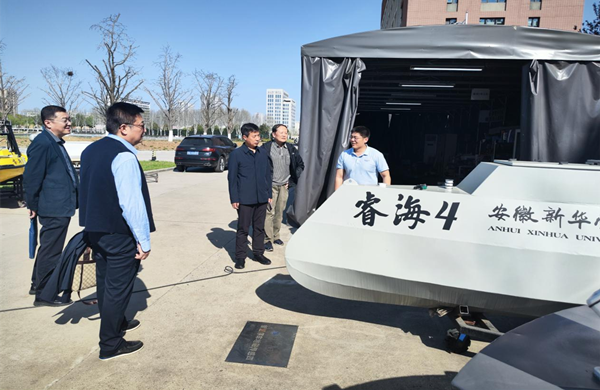 赵良庆对安徽省航海学会、合肥市海事(港航)管理服务中心领导的到来表示热烈欢迎,并简要介绍了学校的整体发展情况,重点阐述了我校睿航无人艇团队近年来取得的成绩。他指出,学校始终坚持以服务地方经济社会发展为导向,积极探索与行业、企事业单位、科研院所的交流与合作,致力于培养社会需求的高素质应用型人才,希望通过此次交流,能够进一步加强与行业协会、管理部门的紧密合作,共同为安徽省内陆湖水域的健康发展贡献科研力量和人才支撑。