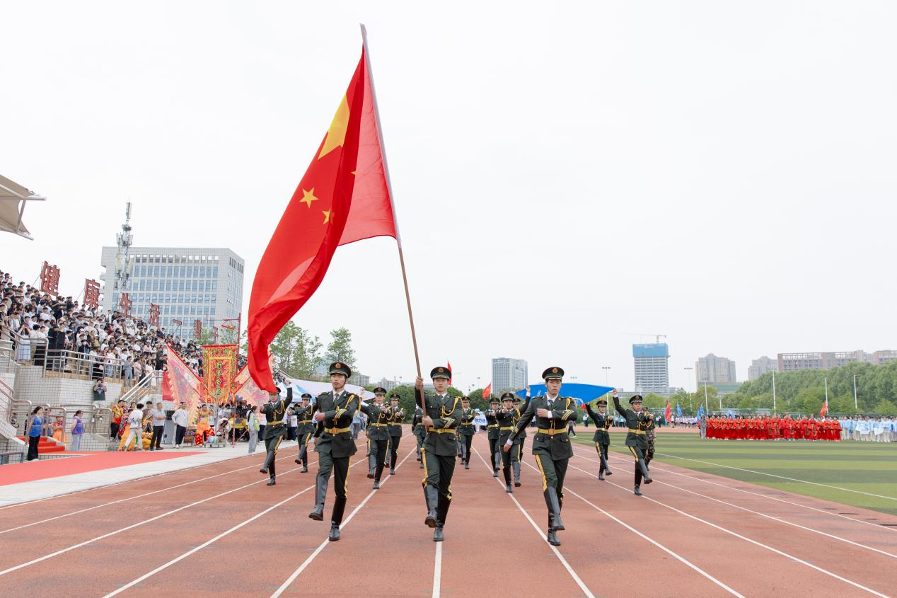 雄壮的国歌奏响,激昂的旋律在体育场上空回荡,鲜艳的五星红旗迎风招展,点燃全场师生炽热的目光。此刻,运动健儿们的热血在沸腾,斗志在燃烧,蓬勃的激情与飘扬的国旗一同升腾!