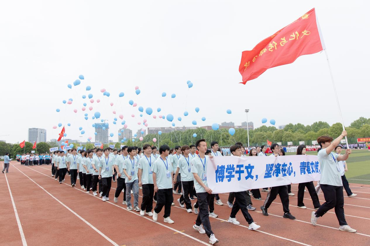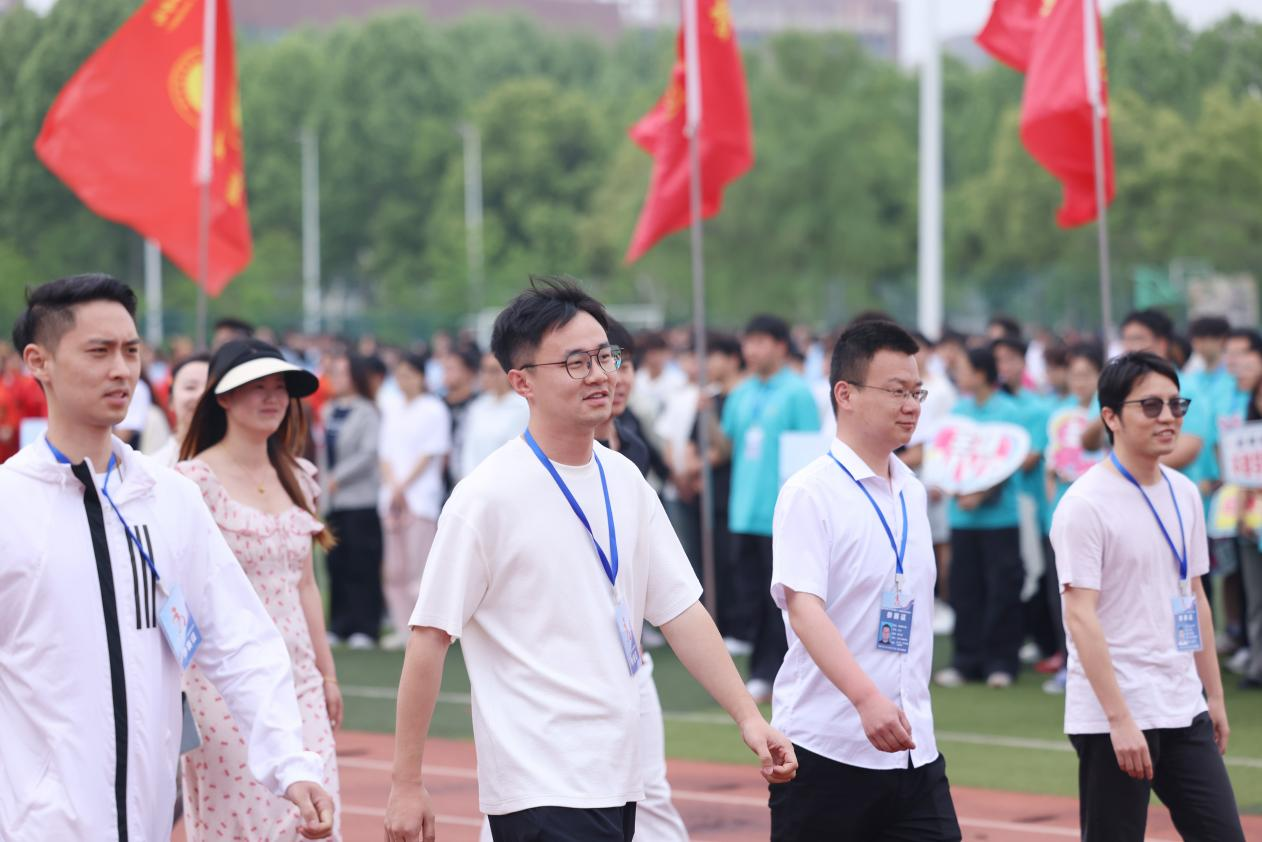 “青春是火,拼搏是光”,各二级学院代表队昂首阔步依次走过主席台。各学院方阵或英姿飒爽,或创意十足,用自信的笑容和昂扬的姿态,共同诠释着“团结拼搏、勇创佳绩”的体育精神,彰显新时代青年的蓬勃朝气与多元风采。“讲台上传道授业,赛场上挥洒激情”,值得一提的是,本届运动会首次迎来教职工参赛队伍。“公平使者”裁判员方阵最后出场,他们手中的秒表和量尺将见证着每位运动员在赛场上的拼搏。