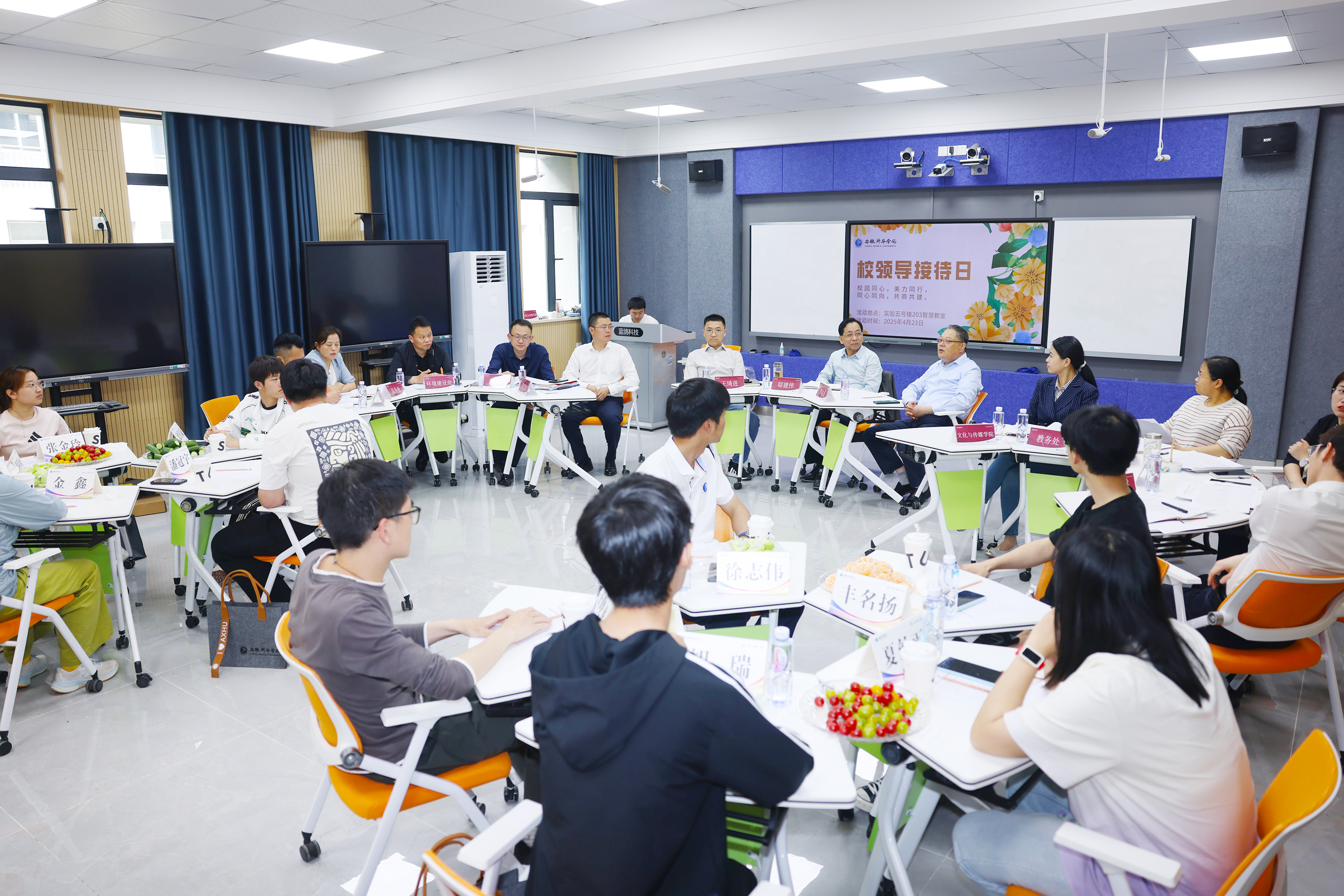 本网讯(通讯员:孙宁波 王亚君 摄影:翟漱文)4月23日下午,学校举行“校领导接待日”活动。省督导专员、校党委书记邸建伟,副校长李金星、王琦进出席活动。校领导们与学生代表面对面座谈,现场回应学生关切,破解急难愁盼问题。