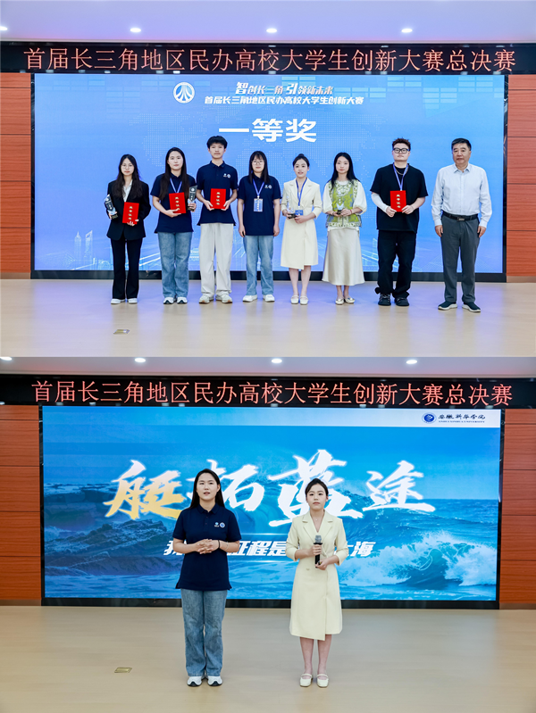 本网讯(通讯员:陈启虞 许苗苗)5月8日,首届长三角民办高校创新大赛总决赛在上海工商职业技术学院嘉定校区圆满落幕。我校由指导教师电子工程学院/智能制造学院教师刘源,学生肖雨娜、赵可雯、于思诺组成的《艇拓蓝途——大水面环境立体智慧化监测系统》参赛团队,凭借出色的创新设计与现场表现,从长三角地区21所民办高校的参赛项目中脱颖而出,斩获总决赛现场赛一等奖。