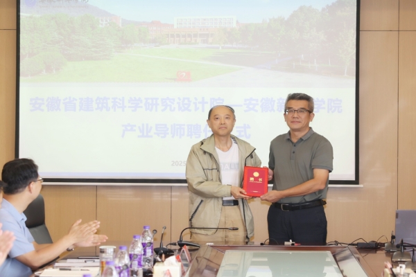 协议签署后,安徽新华学院城市建设学院院长沈小璞教授为安徽省建筑科学研究设计院等专家颁发产业导师聘书。