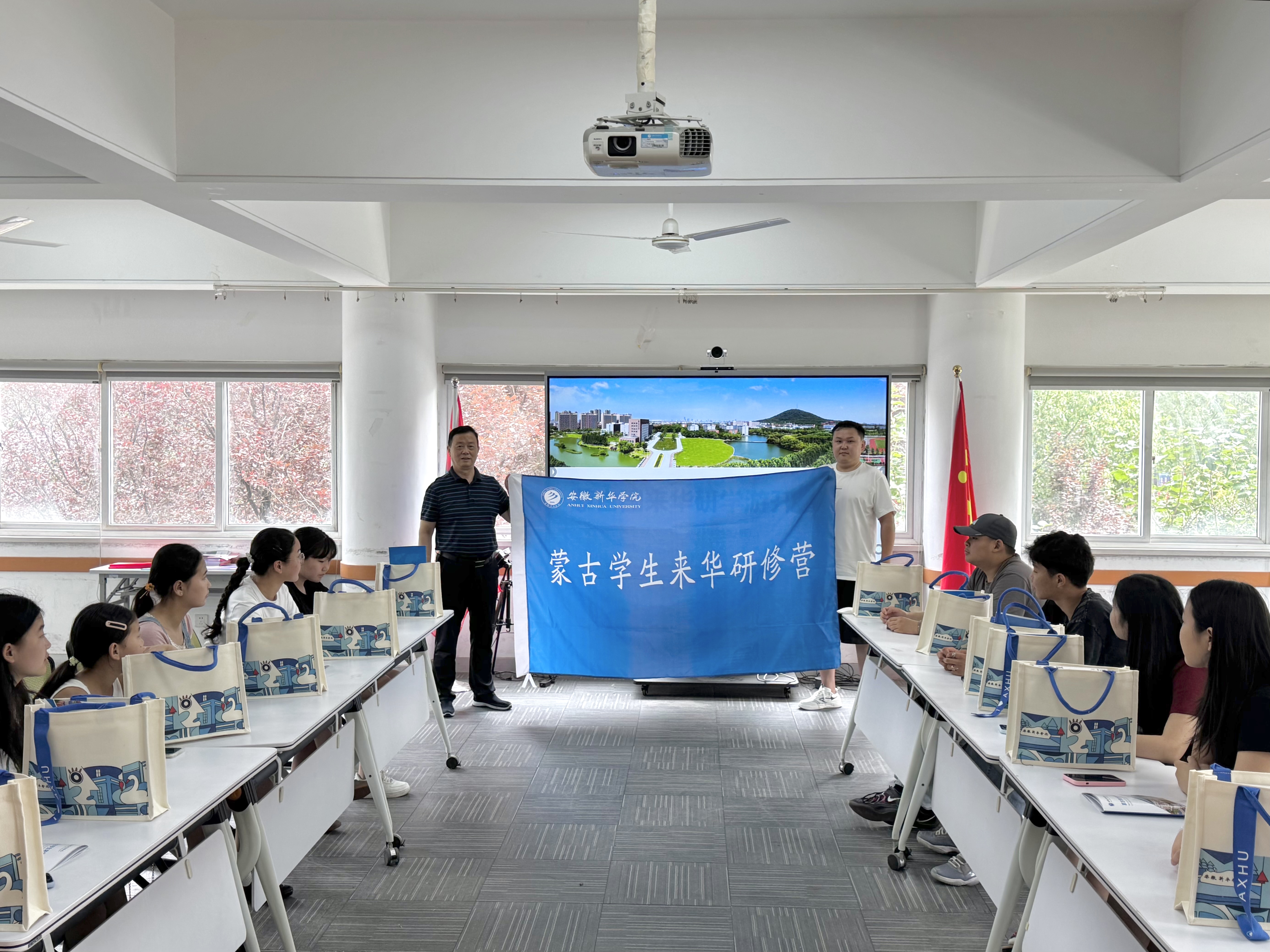 在6月26日的开营仪式上,国际交流合作处处长徐鸣为蒙古国来华师生颁发研修营旗,蒙古国领队达西老师在致辞中特别感谢安徽新华学院的精心安排,他表示:“这次交流必将成为两国青年友谊的新起点。”开营仪式后,蒙古国师生参观了我校重点实验室、园林展馆,对我校的办学历史、办学特色、实验室建设、课程体系和校园环境给予了高度评价。