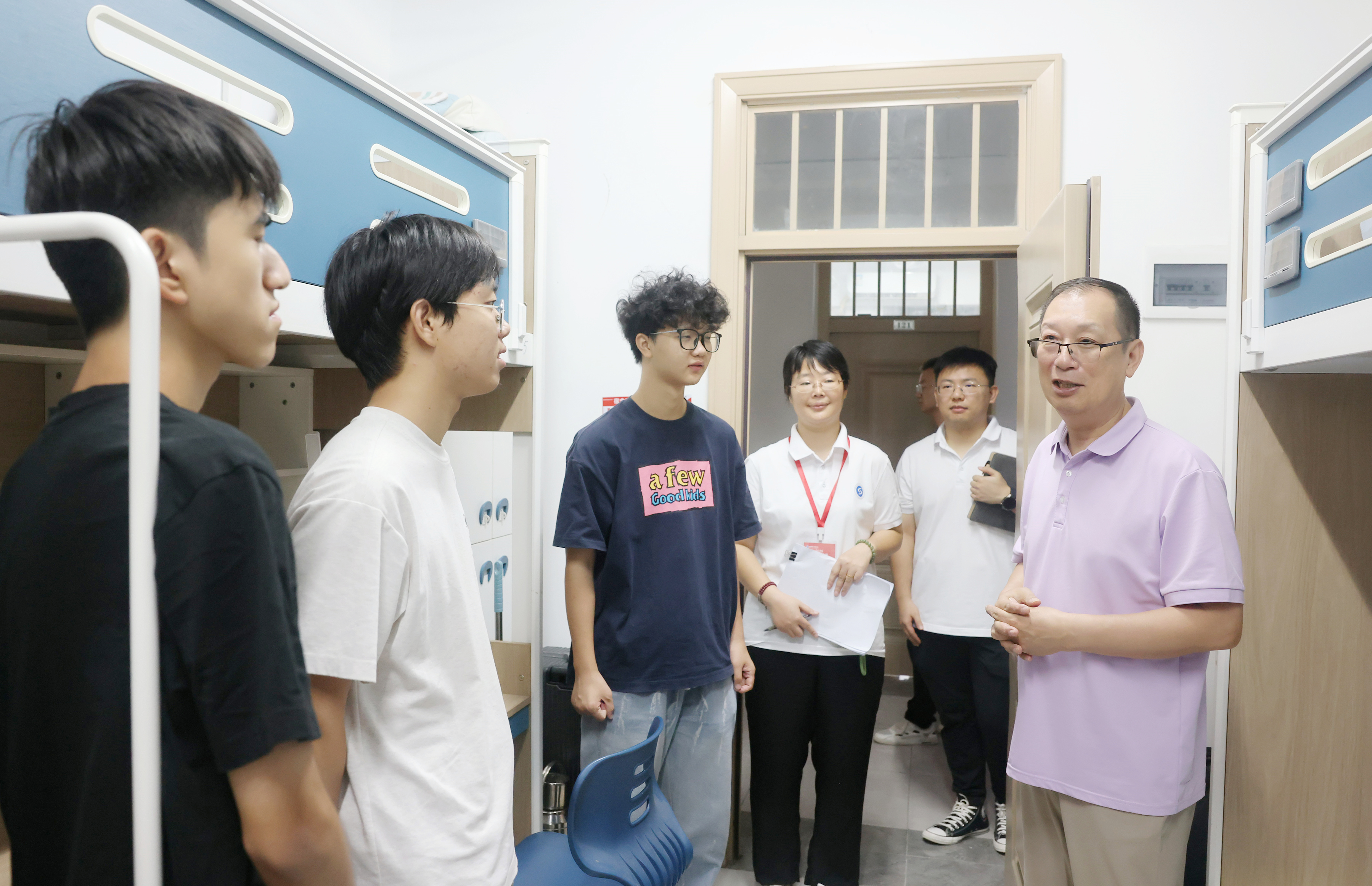 本网讯(通讯员:王亚君 摄影:陆如海 翟漱文)8月31日下午,校领导前往新生宿舍开展慰问活动, “零距离”倾听心声、关怀需求,为初入校园的新生们送上问候。