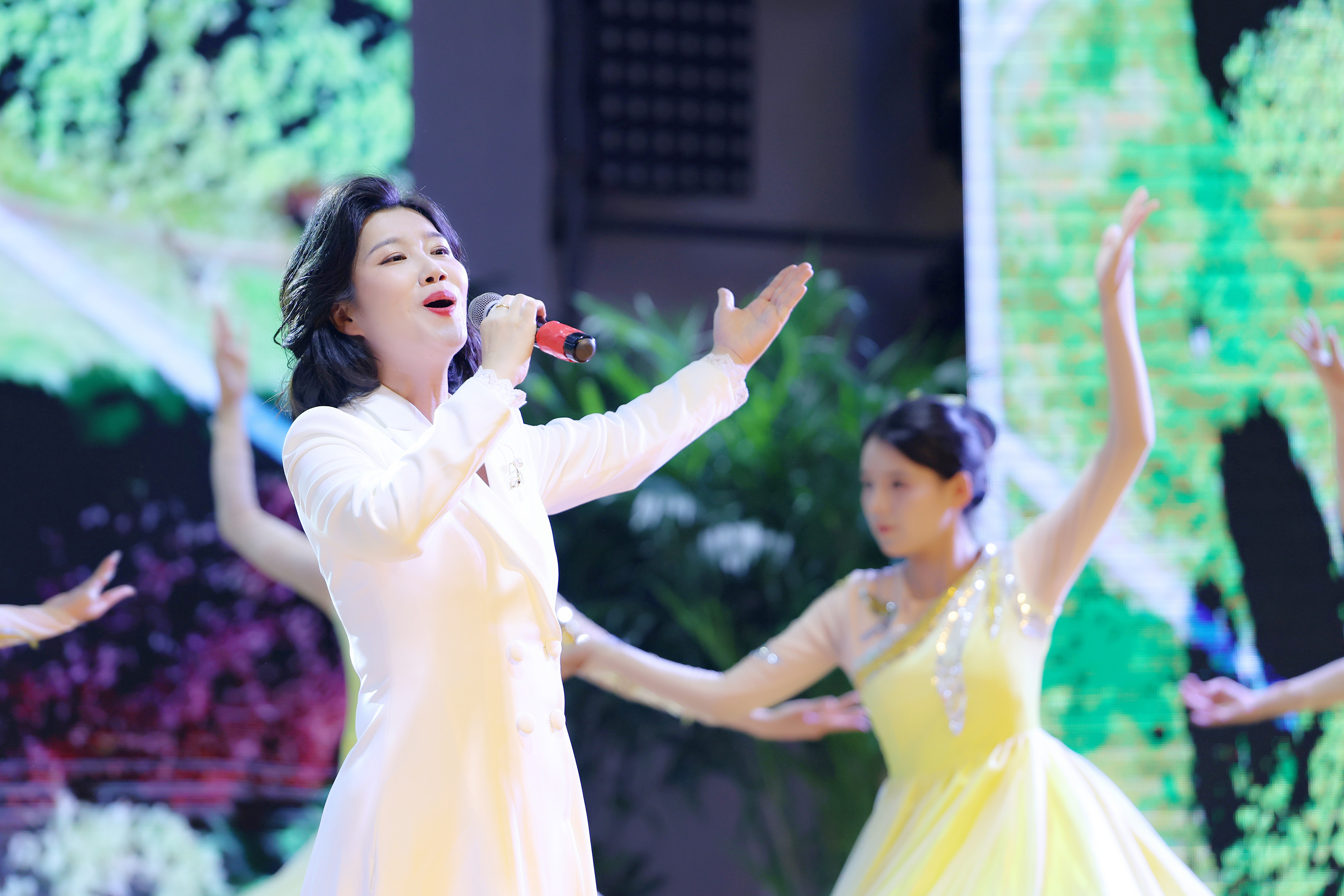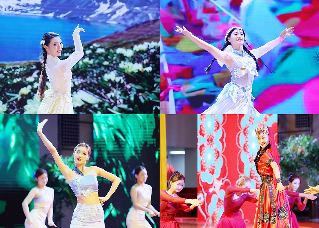 大会表彰期间还穿插了多个精彩文艺节目。音乐学院教师沈绿原携手艺术学院学生们带来了歌舞《心曲》,悠扬旋律搭配灵动舞姿,诠释这份镌刻心间的师生深情,让现场温情氛围愈发浓厚。艺术学院师生带来舞蹈《锦绣中华》,演员们身着传统服饰,以翩跹舞姿展现中华文化的博大精深与独特魅力,既传递对全体教师的美好祝福,也彰显了新时代青年传承优秀传统文化的自信。音乐学院教师张乐天和文化与传媒学院学生合作带来原创节目《一声老师,一生老师》,节目以叙事性歌舞,讲述新华园里师生相知相伴、共同成长的故事,细腻的情感表达、真挚的演绎引发全场共鸣,在场师生为之动容。
