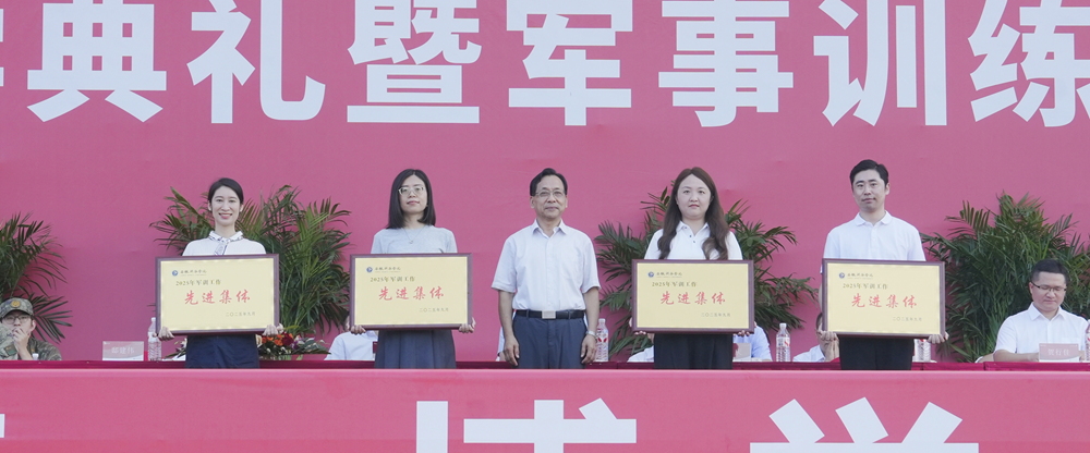 校党委书记邸建伟为获评军训工作“先进集体”的代表颁奖。