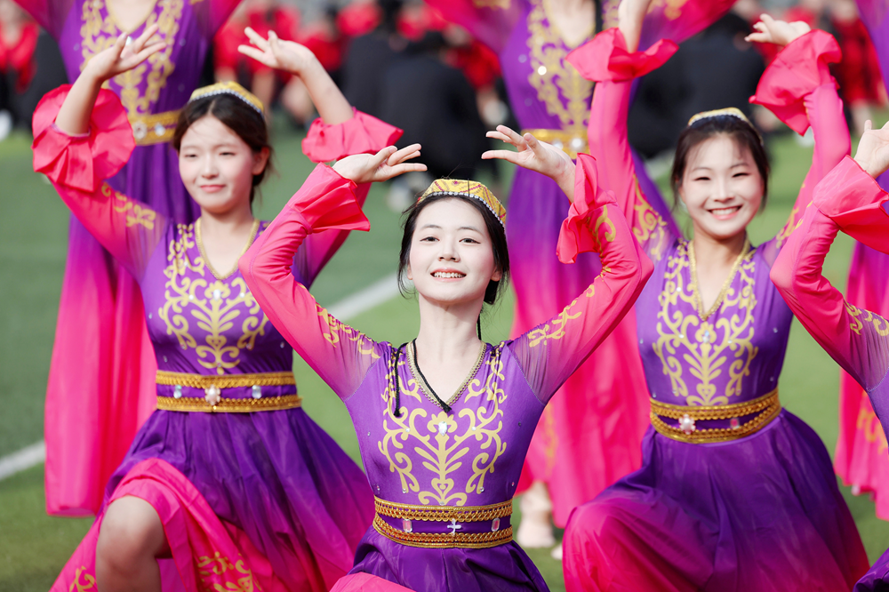 展示环节,《龙腾新华》破空而出,气势恢宏;《匕首操》动作凌厉、锋芒逼人;《擒敌拳》拳招连环,尽显骁勇之姿;《军体拳》拳势如山,意志如钢;《应急棍》挥洒如电,棍影纵横;《华舞飞扬》节奏统一、形意相合,将青春的热望与追梦的坚定融为绚烂画卷。
