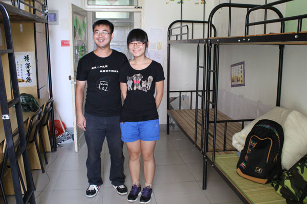 余艺琳的表哥吴结海是我校校学生会的副主席,因为要准备迎新工作,所以要提前到校,于是8月25号余艺琳就跟着表哥一起来到了学校,等待报到。她说自己之所以来这么早,主要是想提前来看一下新学校,感受一下大学校园的氛围。