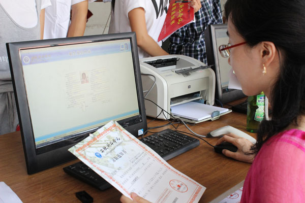 为了迎接新生的到来,我校有专门派送校车去火车站和汽车站将来校报到的新生载到学校。万小丽一行新生下车后,便开始前往各自的院系报名。来自土木与环境工程学院的2012级万士斌同学是万小丽的初中同学,他开始带万小丽在商学院迎新咨询处询问后便领她前往在电子注册处,随后去万小丽的辅导员那报到。当万小丽将录取通知书递交给辅导员的时候,久经奔波的她,微微叹了一口气,脸上露出了一丝愉悦的笑容。