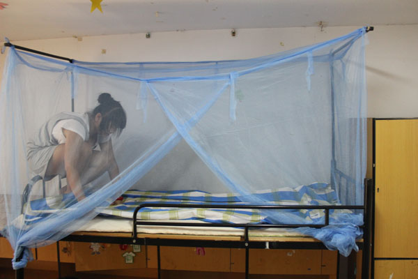 在宿舍管理员那拿来属于自己的钥匙后,万小丽便开始忙碌起来了。宿舍的下铺还是空的,但是她却选择了上铺的位置,“我喜欢上铺,上上下下还可以减肥呢。”她笑着说。在吴婷的帮助下,帐篷已经挂好了,她也没有闲着,拿起自带的毛巾开始擦床铺、桌子,铺床铺,她顺便还把宿舍里的地也打扫了一番。小小年纪,但却透露着自立独挡一面的成熟感。