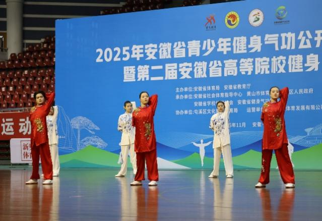 本网讯(通讯员:朱书悦) 11月16日,由安徽省体育局、安徽省教育厅联合主办的2025年安徽省青少年健身气功公开赛(高校组)暨第二届安徽省高等院校健身气功比赛圆满落幕。安徽新华学院艺术学院师生代表团凭借扎实功底与卓越风采,从全省47支高校代表队、近300名参赛师生中脱颖而出,斩获3项一等奖、7项二等奖、2项三等奖的优异成绩,更以昂扬向上的精神风貌赢得赛场内外广泛赞誉,实现了竞技成绩与体育道德风尚的双赢。