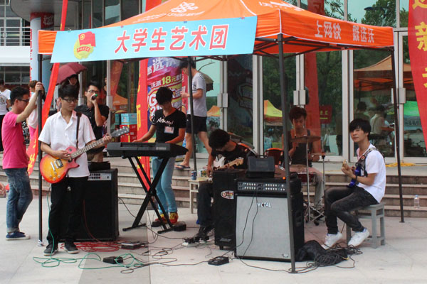 大学生艺术团也别出心裁地献上富有动感的自制舞蹈,配上古筝的旋律,和一首首动听的歌曲,深情演奏着的乐手拼凑出一幅美丽的画面;青年志愿者协会为来报名的学弟学妹们送上了真诚的志愿服务,陪同大一新生报名,帮助拿行李等系列义务活动,用志愿者的旗帜拨动着夏日的彩虹。