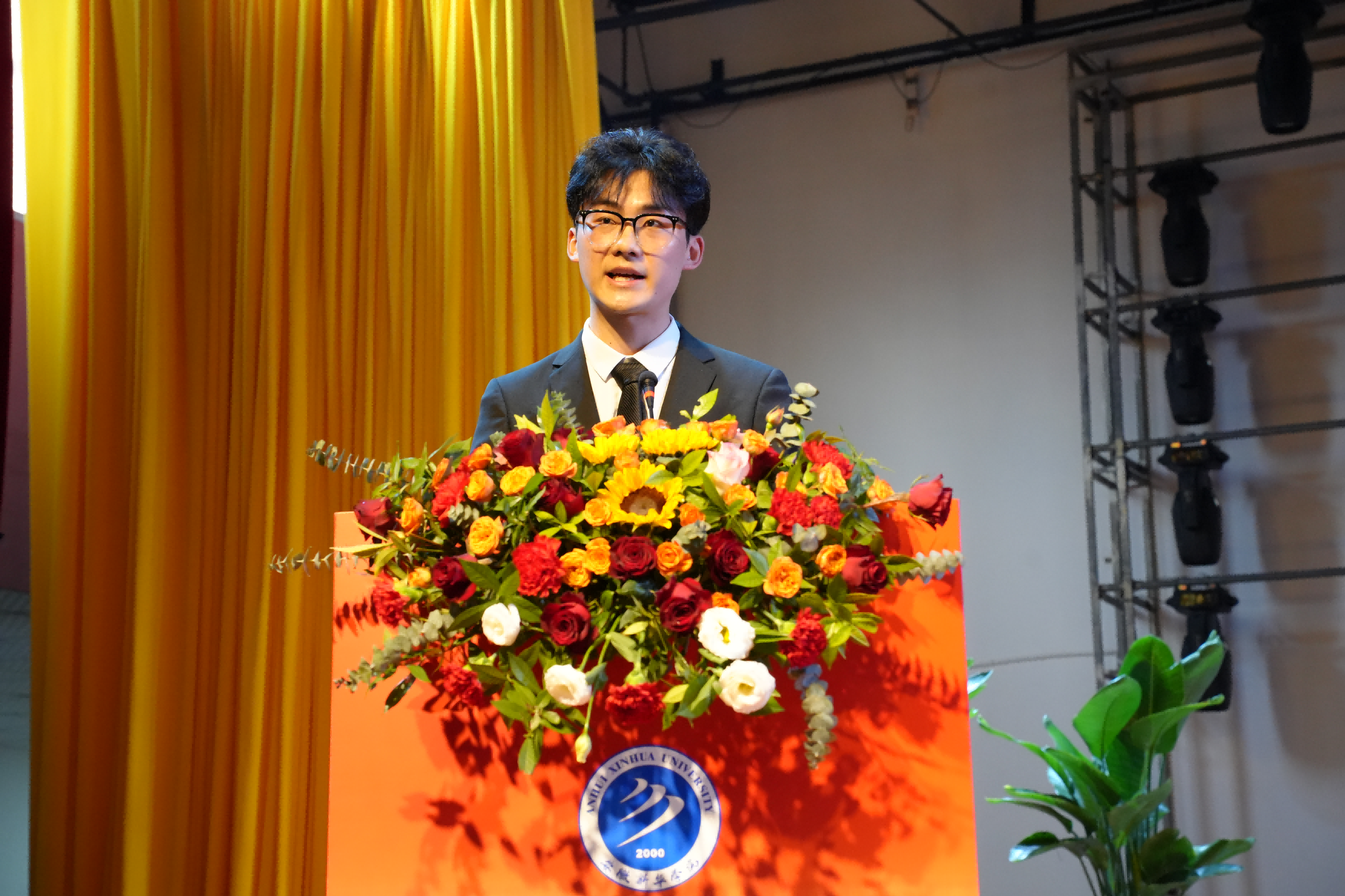 闭幕式上,贺行佳致大会闭幕词。他代表学校向新当选的第十届学生会委员会委员表示祝贺,并就进一步做好学生会工作提出四点希望:一是立稳思想航标,用理想信念锚定青春坐标,推动理论学习融入校园生活,引导青年争做“清醒派”;二是扛实桥梁重任,把大会精神种进每位同学心田,推动学代会成果转化为服务同学的实际行动;三是深化服务改革,让学生会成为暖心加油站,以务实作风解决同学关切;四是沸腾青春热血,用奋斗书写新时代新华传奇,鼓励学生在课堂、实验室、社会实践中展现担当,为学校发展贡献青春力量。